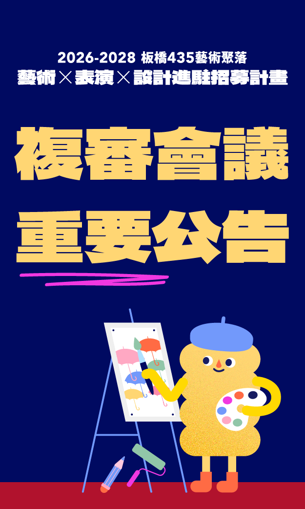 2026 – 2028 年板橋435藝術聚落進駐計畫 複審名單及會議時間公告!