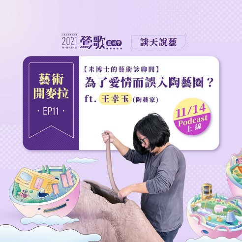 藝術家王幸玉曾在藝術大學內長期教導陶瓷創作,如果在向她的學生問起這位藝術家,對方都會投以崇拜的眼神看著你。除了教學,也常常能在公共藝術中看到她的作品,本集就來聽聽藝術家一路走來的旅程故事吧!