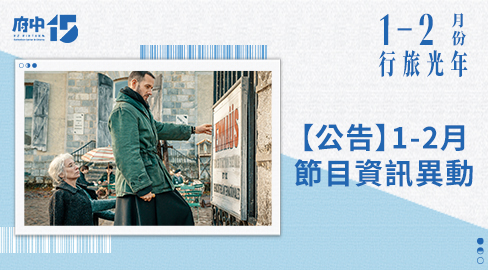 【紀錄片放映院】1 - 2月「行旅光年」主題影展節目 資訊異動公告