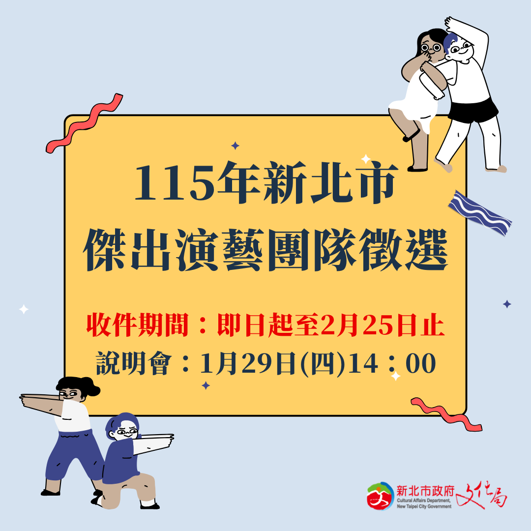 「115年度新北市傑出演藝團隊徵選及獎勵計畫」徵件