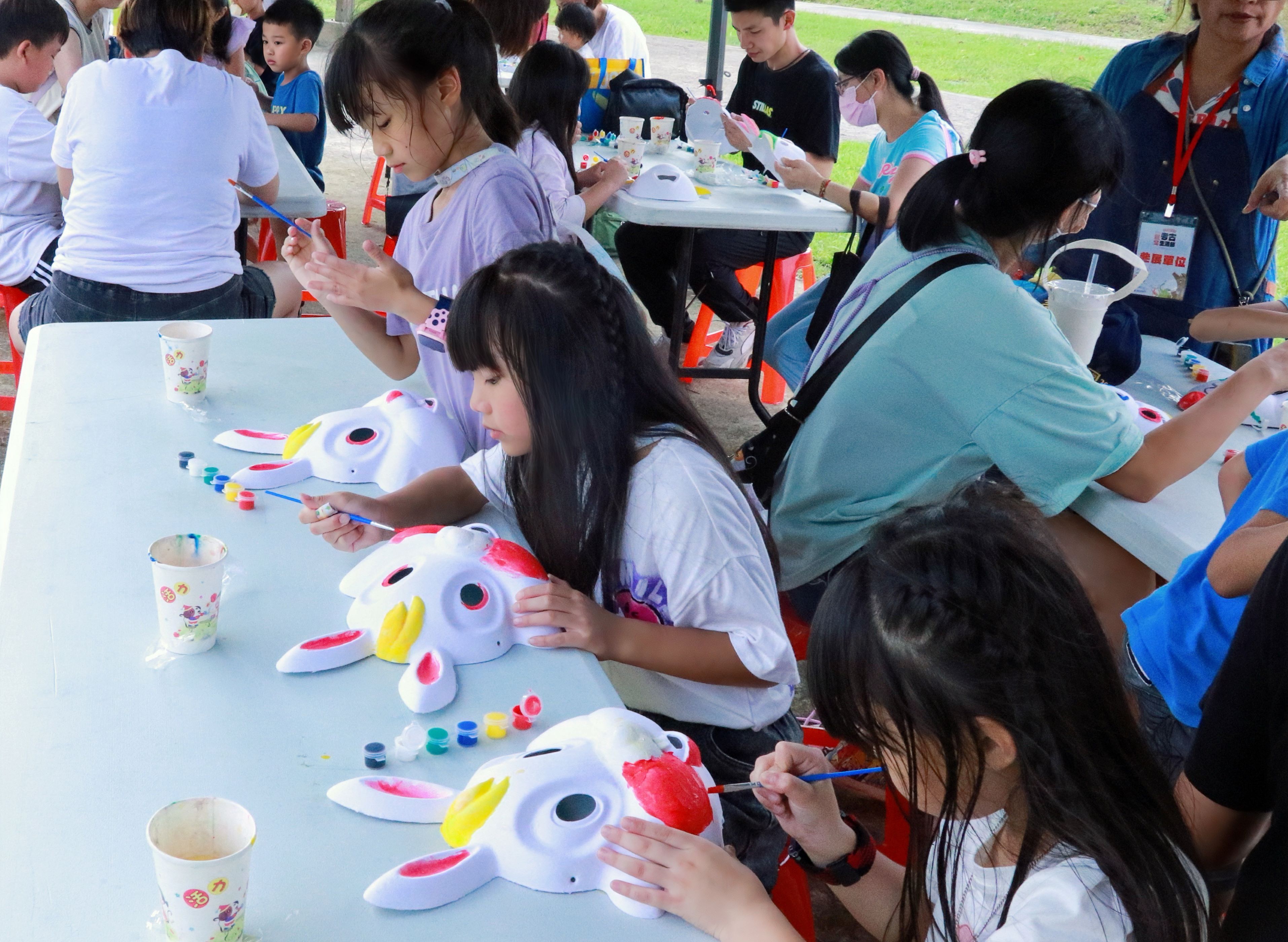 十三行博物館日前在4月25日、26日的「史前動物派對」設置「動物面具彩繪」攤位,由藝術家帶領200位民眾使用夜光塗料在可愛的大象、狗、貓、兔等造型面具上著色,也特別於專為自閉症朋友所打造的「早安博物館」活動舉辦面具彩繪DIY場次,讓星兒透過藝術發揮潛力,促進統合能力,並鼓勵參與者將作品交給博物館,與專業藝術團隊攜手將一個個面具搖身一變成為吸睛的多媒材藝術裝置。
