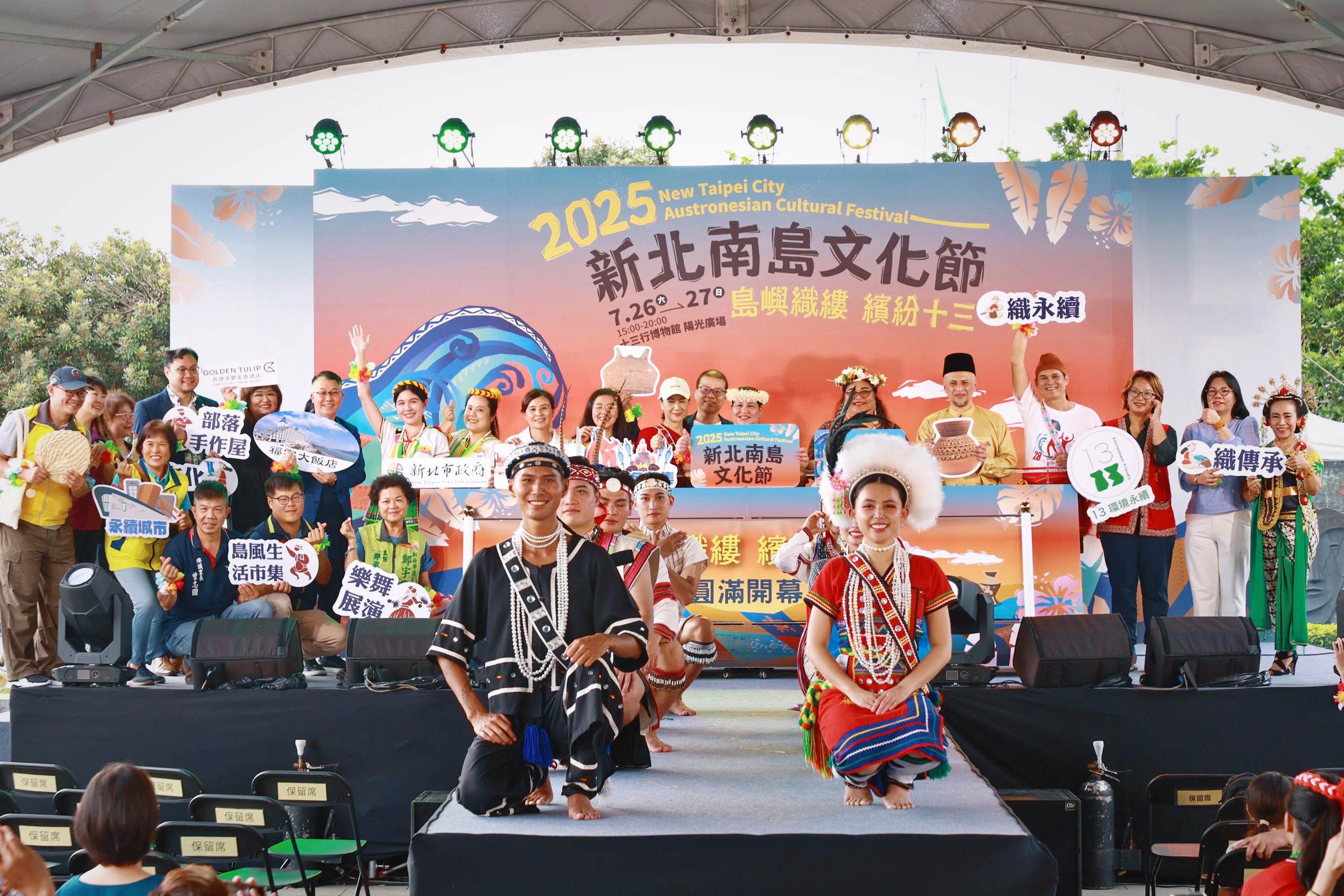 【新北市訊】「2025新北南島文化節」今(26)日在新北市立十三行博物館盛大開幕!匯集馬紹爾、吐瓦魯、菲律賓、印尼四國南島文化代表團隊,聯手臺灣原住民族群,共同編織北臺灣規模最盛大的南島語族文化慶典。開幕式現場,各國團隊及貴賓身著絢麗傳統服飾華麗登場,透過真人服飾展演為兩天精彩活動揭開序幕,生動展現南島文化跨越太平洋的深厚底蘊與傳承之美。