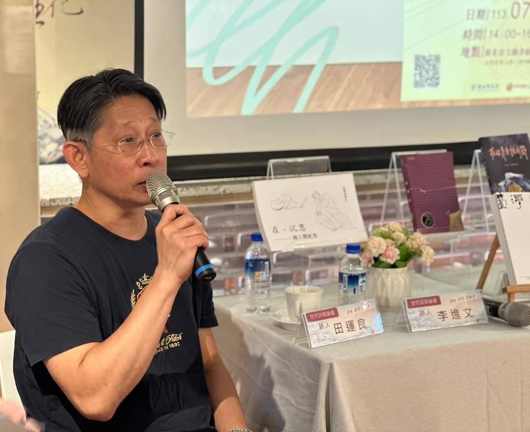 李進文老師於講座中分享,詩社最為重要的即是人與人之間的「溫度」,