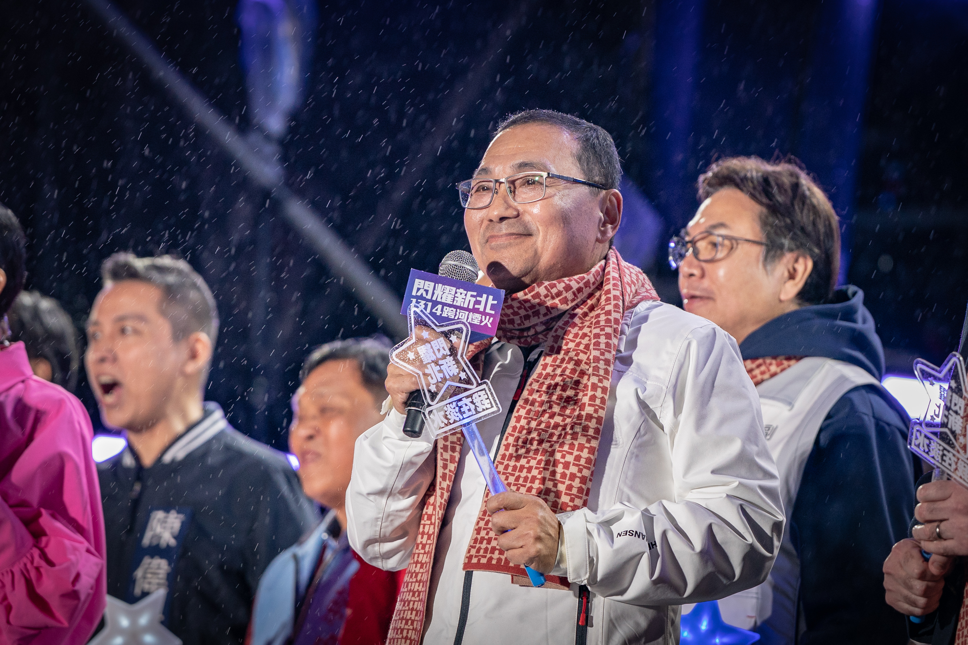 【新北市訊】新北市年度壓軸盛事「閃耀新北1314跨河煙火」31日傍晚起,在淡水、八里盛大展開!儘管跨年夜下雨,仍不減民眾迎接新年的熱情,活動匯集雙主場流行音樂演唱會、特色市集、跨河煙火與人文地景漫遊,淡水、八里兩地舞台吸引近9萬人共度跨年。兩大主舞台卡司包括韓國人氣天后hwasa、以《進擊的巨人》片尾曲爆紅的日本創作歌手樋口愛等韓日藝人壓軸演出,為跨年夜掀起高潮。晚間淡水與八里舞台同步連線,新北市長侯友宜與受邀出席的美國在台協會(ait)處長谷立言、市府團隊及現場民眾一同倒數,於20時26分施放時長13分14秒的跨河煙火,在河岸的璀璨煙花下迎接嶄新的一年。